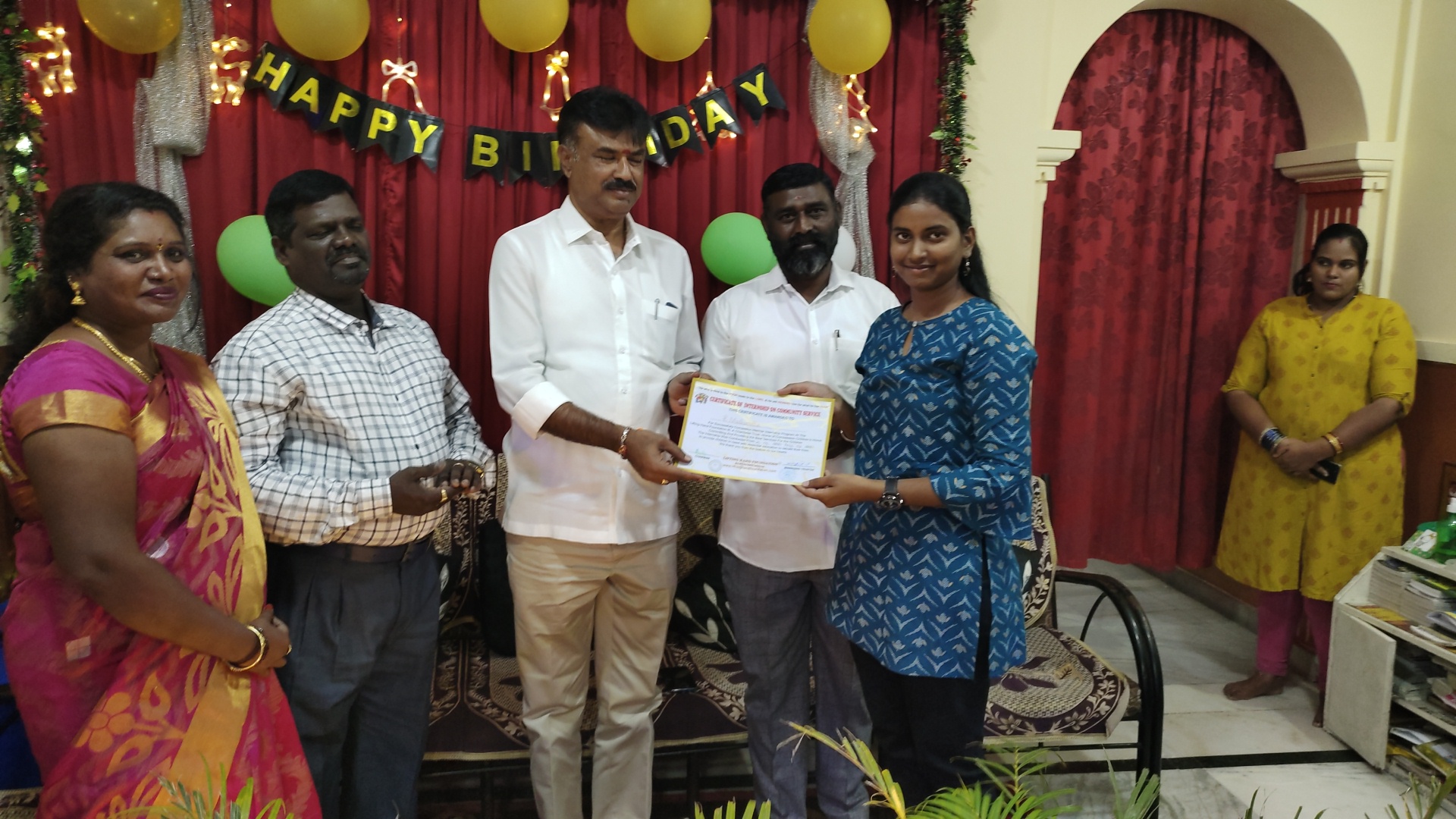 Ex Counselor Govindaraj distributed the certificates to the candidates.